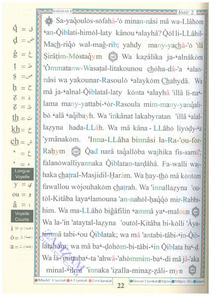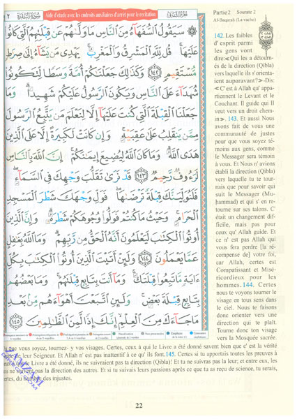 - Colour Coded Tajweed Rules with French translation and transletaration