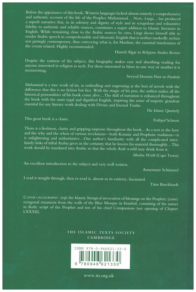 "Lings provides a wealth of detail on the life of Muhammad, the time and place of many Koranic revelations, and the foundation of Islam, all based exclusively on 8th- and 9th-century Arabic biographical sources and collections of the sayings attributed to Muhammad. General readers will find a well-written, straightforward chronological narrative; Muslim readers will appreciate the favorable treatment of Muhammad; while specialists will find a faithful and convenient rendering of source material."