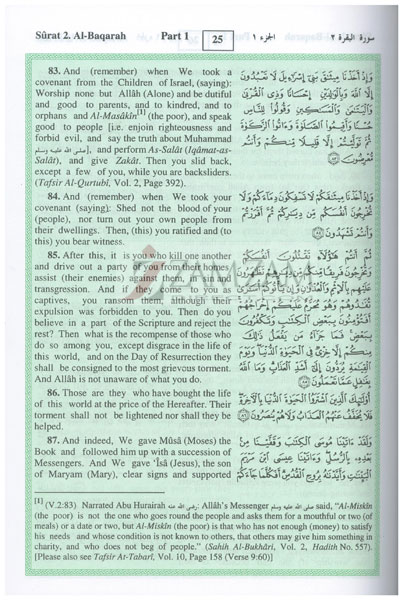 -Interpretation of the meanings of the Noble Qur\'an with Arabic text in the modern English language. A summarized version of At-Tabari, Al-Qurtubi and Ibn Kathir with comments from Sahih Al-Bukhari.