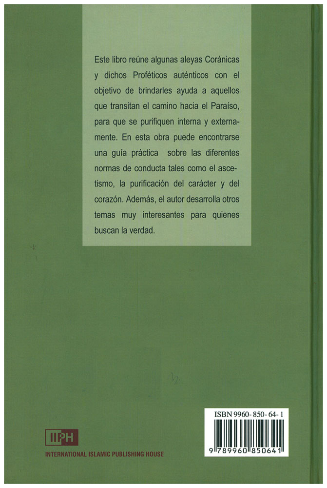 Este libro reune algunas aleyas Coranicas y dichos Profeticos autenticos con el objective de brindarles ayuda a aquellos que transitan el camino hacia el Paraiso, para que se purifiquen interna y externamente. En esta obra puede encontrarse una guia practica xobre las diferentes normas de conducta tales como el ascetismo, la purification del character y del Corazon. Ademas, el autor desarrolla otros temas muy interesantes para quienes buscan la verdad.