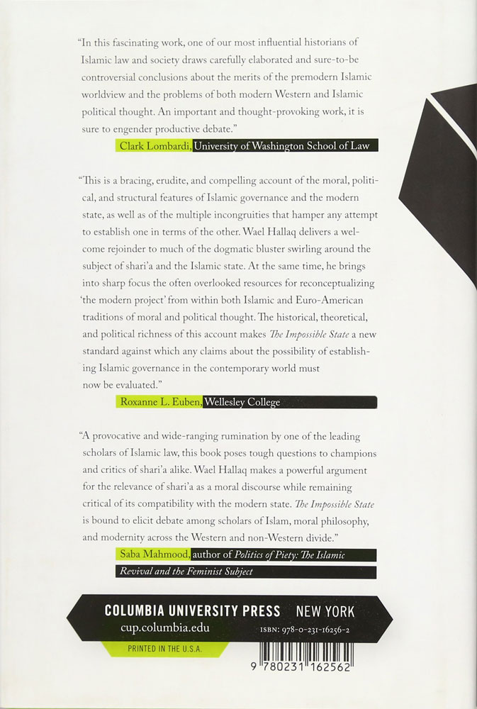 Author: Wael Hallaq Publisher: Columbia University Press Paperback ISBN : 9780231162579 Language : English -Wael B. Hallaq boldly argues that the "Islamic state," judged by any standard definition of what the modern state represents, is both impossible and inherently self-contradictory. Comparing the legal, political, moral, and constitutional histories of premodern Islam and Euro-America, he finds the adoption and practice of the modern state to be highly problematic for modern Muslims. He also critiques more expansively modernity's moral predicament, which renders impossible any project resting solely on ethical foundations. The modern state not only suffers from serious legal, political, and constitutional issues, Hallaq argues, but also, by its very nature, fashions a subject inconsistent with what it means to be, or to live as, a Muslim. By Islamic standards, the state's technologies of the self are severely lacking in moral substance, and today's Islamic state, as Hallaq shows, has done little to advance an acceptable form of genuine Shari'a governance. The Islamists' constitutional battles in Egypt and Pakistan, the Islamic legal and political failures of the Iranian Revolution, and similar disappointments underscore this fact. Nevertheless, the state remains the favored template of the Islamists and the ulama (Muslim clergymen). Providing Muslims with a path toward realizing the good life, Hallaq turns to the rich moral resources of Islamic history. Along the way, he proves political and other "crises of Islam" are not unique to the Islamic world nor to the Muslim religion. These crises are integral to the modern condition of both East and West, and by acknowledging these parallels, Muslims can engage more productively with their Western counterparts.