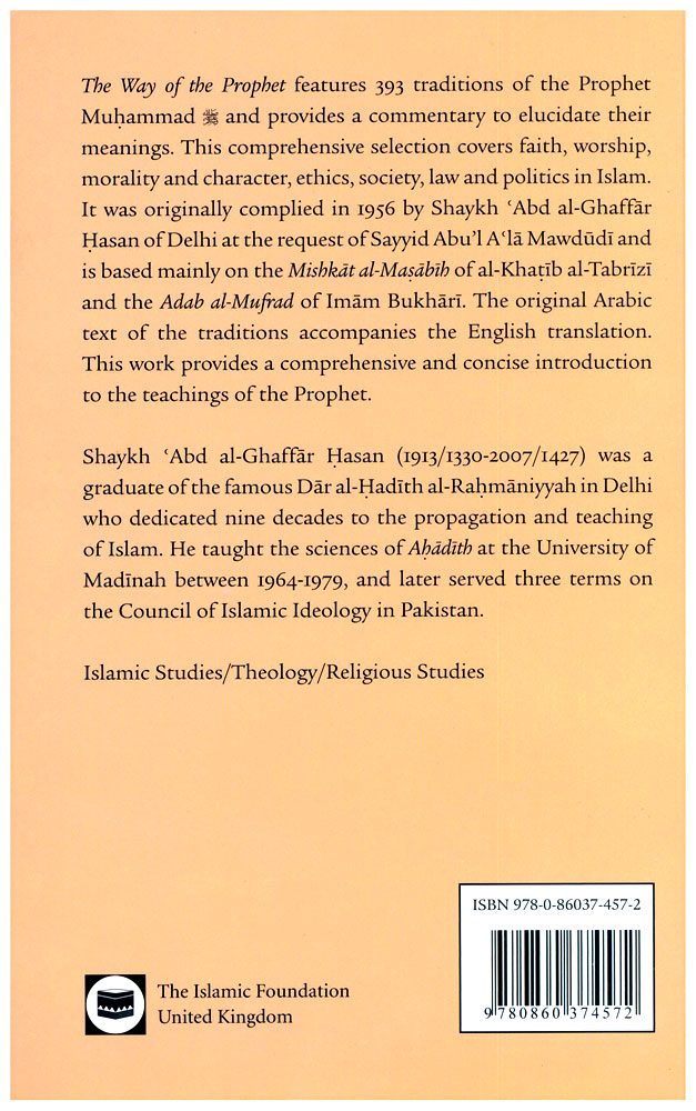 - The Way of the Prophet is a translation of a selection of 393 traditions of the Prophet Muhammad and includes a commentary to elucidate their meanings. This comprehensive selection covers faith, worship, morality and character, ethics, society, law and politics in Islam. It was originally complied in the 1950s by Sheikh 'Abd al-Ghaffar Hasan of Delhi at the request of Sayyid Abu'l A 'la Mawdudi and is mainly based on the Miskat al-Masabih of al-Khatib al-Tabrizi and the Adab al-Mufrad of Imam Bukhari. The original Arabic text of the traditions accompanies the translation along with a first-line index of Prophetic traditions for easy reference. This work provides a comprehensive and concise introduction to the teachings of the Prophet. About the Author Shaykh Abd al-Ghaffar Hasan (1913/1330 - 2007/1427) was a graduate of the famous Dar al-Hadith al-Rahmaniyyah in Delhi who dedicated nine decades to the propagation and teaching of Islam. He taught the sciences of Ahadith at the University of Madinah between 1964-1979, and later served three terms on the Council of Islamic Ideology in Pakistan.